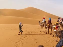 Having arrived in Merzouga, we'll swap our vehicles for camels to immerse ourselves in the desert and make our way to Bedouin camp where we'll spend the night and enjoy a traditional Moroccan dinner.