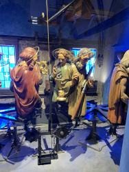 At the stroke of every hour, the trap doors of the mechanism swing open, revealing animated figures to the audience. This captivating scene is known as the procession of the Twelve Apostles on the Prague Astronomical Clock. In addition to the disciples of Jesus, the clock features automatons representing the Turks, avarice, vanity, and death.