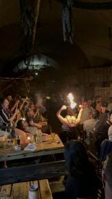 Then the cherry on the cake is the medieval show, with performers from jesters to magicians, dancers and even an authentic sword fight and a fireball show that's sure to leave you speechless!