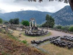 Finally, we'll arrive at Delphi, once considered the center of the world, where we'll spend the night.