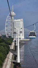 A - The Lisbon Cable Car goes between the Vasco de Gama Tower (North Station) and the Lisbon Oceanarium (South Tower).