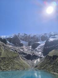 Then we'll continue to explore the spectacular Peruvian region until we arrive at the Soraypama camp, 3,900 meters up. And here, we'll begin the trek to Humantay Lagoon, a turquoise paradise surrounded by the imposing glaciers that form part of the mountain range.