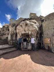 As soon as you arrive, you'll find yourself in awe of this beautiful ensemble of giant sculptures carved into the limestone rock. We'll start walking around the Abode of the Gods and discovering the meaning of this place and all the sculptures we see. Some of them tower up to 33 feet (10 metres) high!